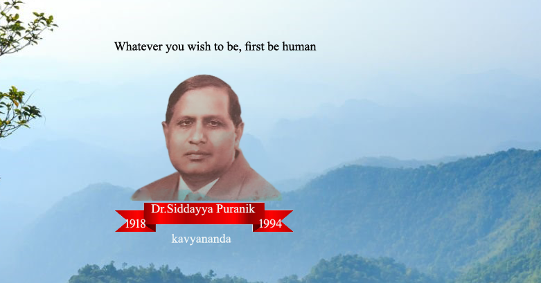 Dr.Siddayya Puranik (Pen Name - kavyananda) was born on 18th June 1918 in Karnataka. He was an eminent Kannada writer who has contributed Immensely to Kannada literature besides being an outstanding IAS Officer with human touch. He was a scholar in Kannada, English, Hindi, Sanskrit and Urdu. He has won many prestigious awards.